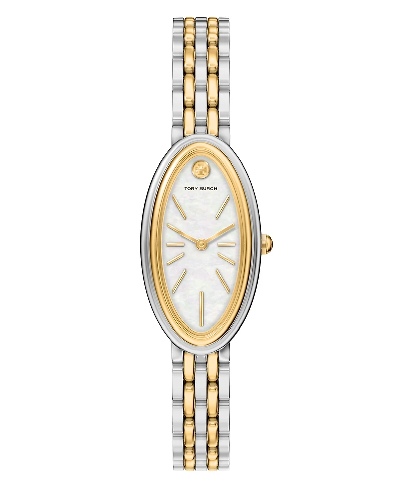 Tory Burch Women's The Oval Elongated Quartz Two-Hand Two-Tone Stainless Steel Watch, 22mm