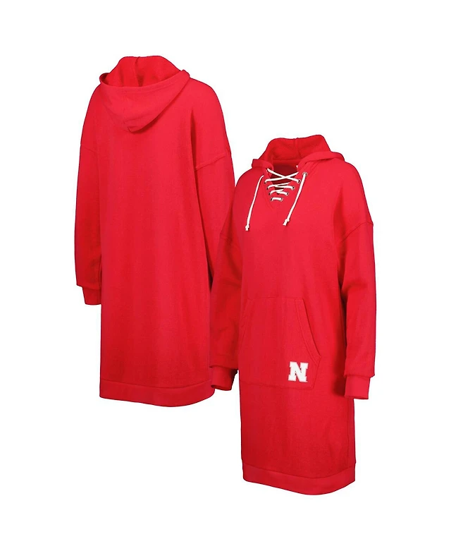 Touch Women's Scarlet Nebraska Huskers Quick Pass Lace-Up V-Neck Hoodie Dress