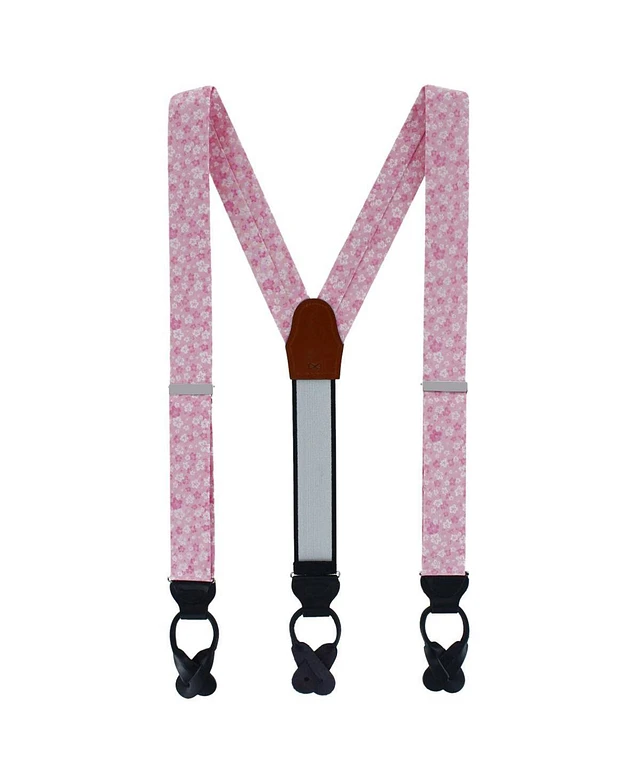 Trafalgar Men's Hanami Cherry Blossom Burst Linen Blend Novelty Button End Suspenders