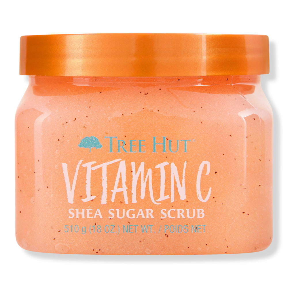 . Benefits: Smells like a boost of bright citrus with a touch of floral with key notes of Pink Grapefruit, Jasmine and Peach Nectar. Exfoliating body scrub removes dull, dry skin to reveal glowing, soft, smooth skin. Deeply nourish and balance skins hydration to help restore skin's natural glow. Tree Hut Vitamin C Shea Sugar Scrub is paraben free, vegan, sulfate free, alcohol free, contains no formaldehyde donors, has a no-slip formula and long-lasting fragrance.. Key Ingredients: Vitamin C is a powerhouse antioxidant that is known to help boost skin for a brighter, firmer and even-tone appearance. Alpha Hydroxy Acid (AHA) is known to help to reveal a fresher-looking, tone and texture. Grapefruit Oil helps aid in removing build-up in the pores while balancing skin. Sugar is a natural exfoliant that effectively polishes away dead skin while helping to boost circulation to the skin surface. Natural Shea Butter is known to deeply moisturize, nourish and soften dry, skin while helping to promote elasticity. Tree Hut Shea Sugar Scrubs feature a 6-oil blend of: Avocado Oil, Macadamia Oil, Sweet Orange Oil, Sweet Almond Oil, Evening Primrose Oil, Safflower Oil.. :