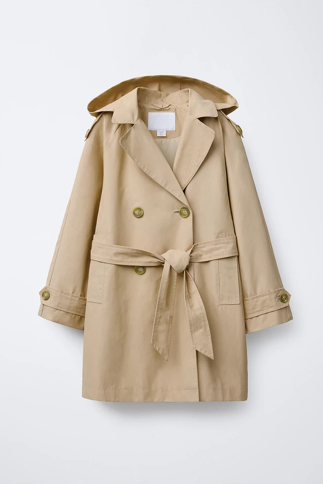 SHORT TRENCH COAT WITH DETACHABLE HOOD