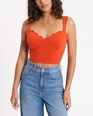 Body Contour Stretch Cotton Scalloped Bustier Cropped Tank