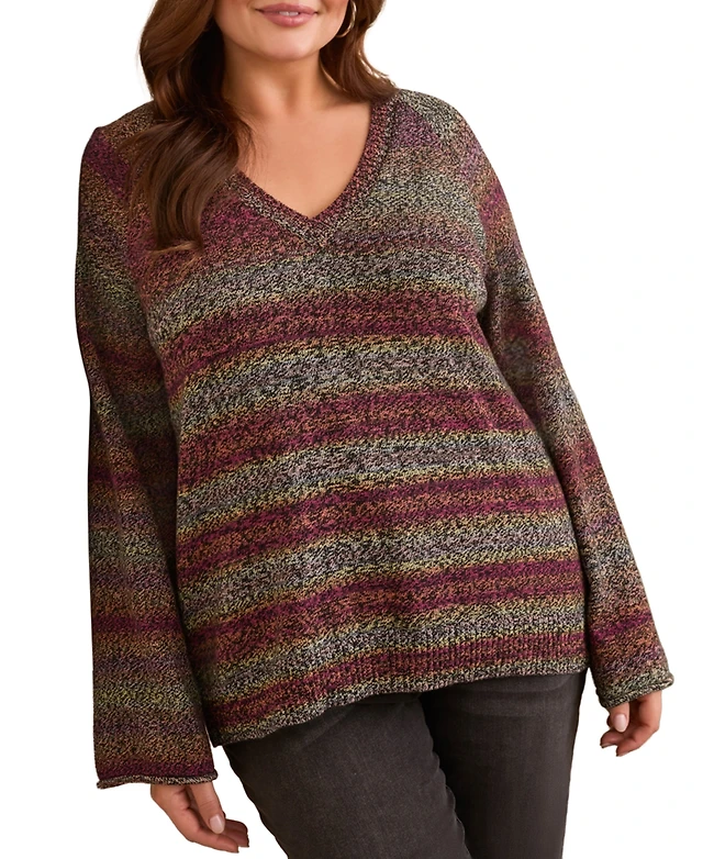 Tribal Plus Size Special Wash Long Sleeve V-Neck Sweater