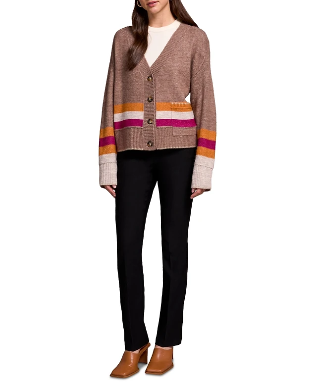 CeCe Women's Striped Long-Sleeve Cardigan Sweater