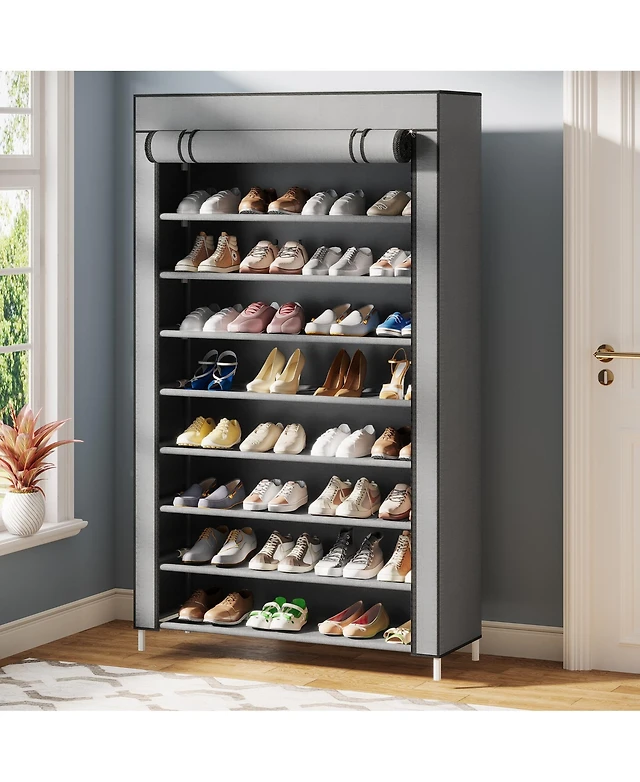 Tribesigns 10 Tier Shoes Rack with Cover,50 Pair Large Shoe Stand, Non-Woven Shoe Storage Cabinet