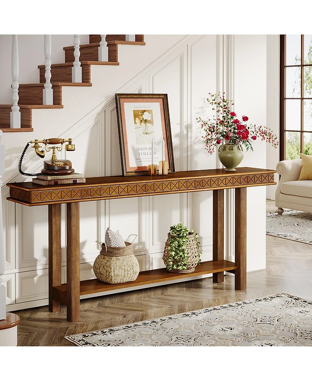 Tribesigns Extra Long Console Table,2-Tier Entryway Accent Table with Storage for Living Room,Wood Sofa Table Behind Couch Narrow Long, Rustic Brown