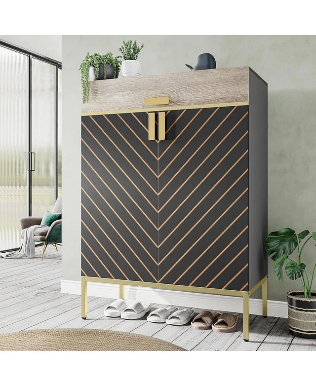 Tribesigns Shoe Cabinet with Adjustable Shelves and Doors, Entryway Shoe Storage Cabinet, Gray/Black