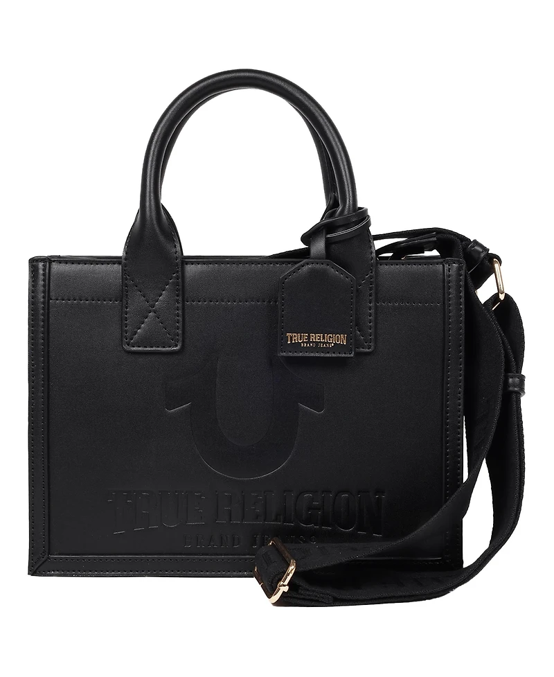 True Religion Debossed Logo Modern Tote with Removable Shoulder Strap