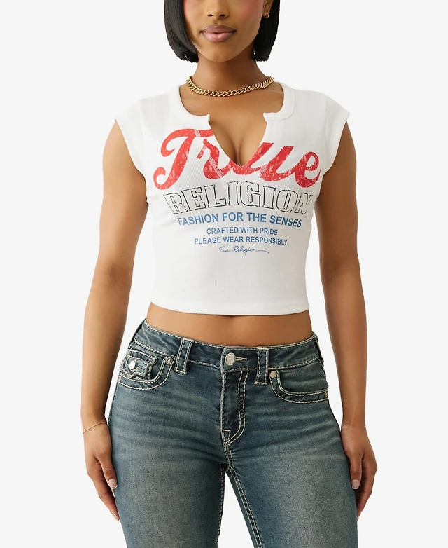 True Religion Women's Vintage Tr V Notch Rib Top
