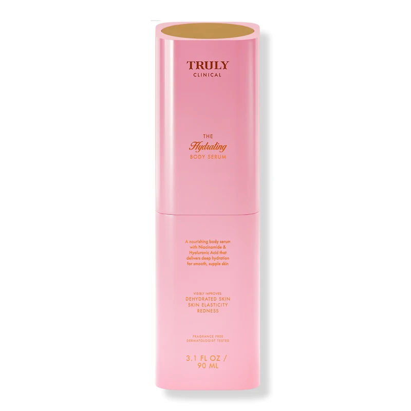 BODY TREATMENT MOISTURIZING SERUM 3.0OZ. Benefits: Replenishes dehydrated skin with hyaluronic acid. Boosts elasticity for plumper, younger-looking skin. Calms redness and irritation with niacinamide. Key Ingredients: Hyaluronic Acid: A powerful humectant, hyaluronic acid acts like a moisture magnet, drawing water into the skin to keep it plump and hydrated.. Niacinamide: A form of vitamin B3, niacinamide calms redness and irritation while strengthening the skins natural barrier to lock in moisture and protect against environmental stressors.. Tru-Barrier Complex: A proprietary complex that supports the skins outermost layer by locking in moisture and keeping irritants out for healthier-looking skin.. Formulated Without: Fragrance.