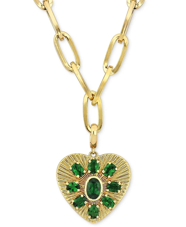 Tsavorite Cluster Sunray Heart 18" Pendant Necklace (1-3/4 ct. t.w.) in 10k Gold