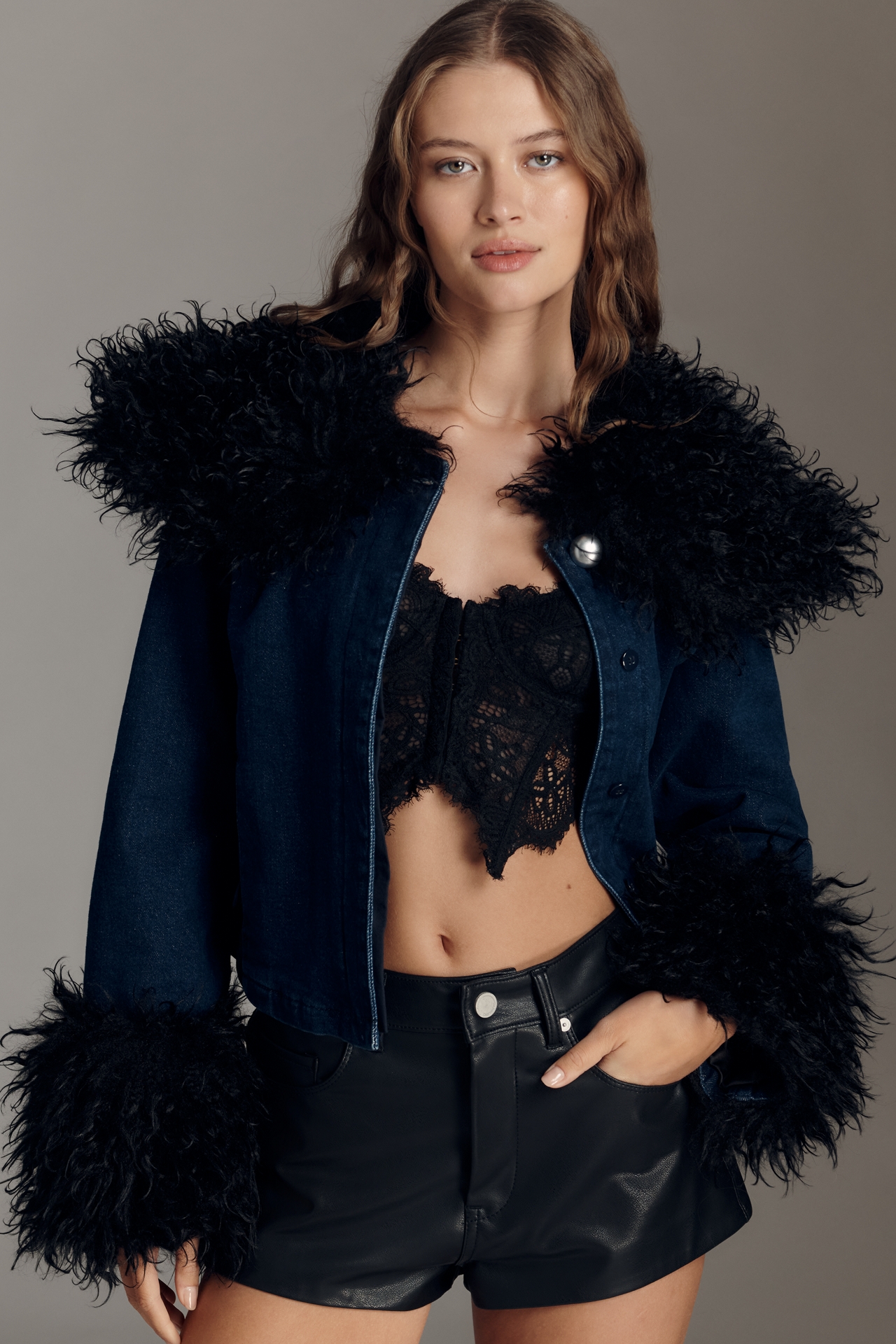 TT Studios Kimmy Faux Fur Trim Crop Jacket in Bloomington, MN