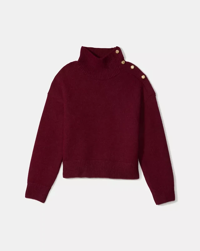 Airy Soft Turtleneck Novelty Button Cuff Sweater