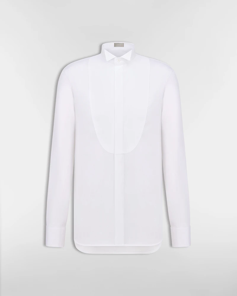 Tailoring is quintessential Dior atelier savoir-faire and lies at the heart of House heritage. Crafted in white cotton, the tuxedo shirt is elevated by a rounded plastron and French cuffs. Featuring a wing collar, the shirt can be coordinated with any House tuxedo to complete a sophisticated look.