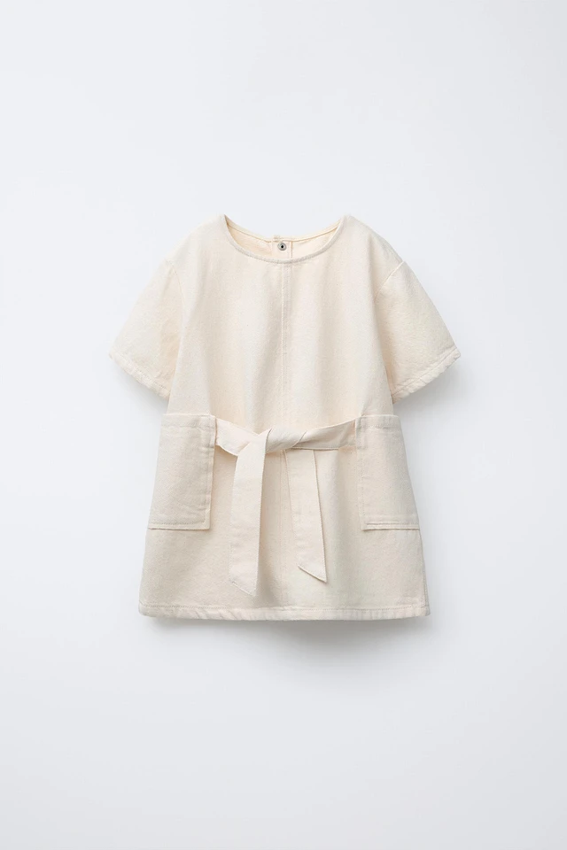 TWILL DRESS WITH TIE BELT