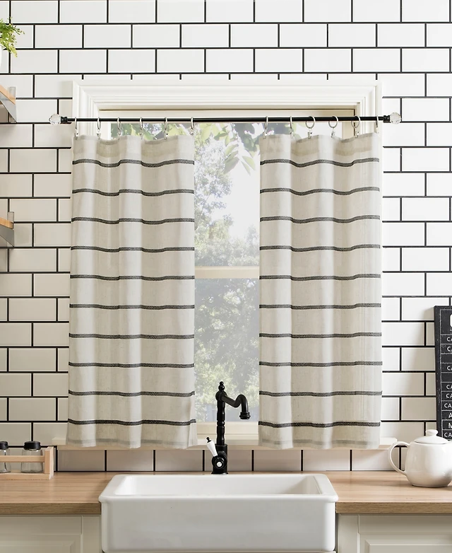 Textured Slub Stripe Anti-Dust Linen Blend Sheer Cafe Curtain Valance