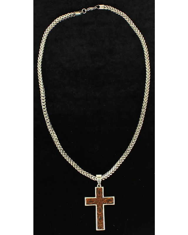 Twister Men's Tooled Inlay Cross Necklace