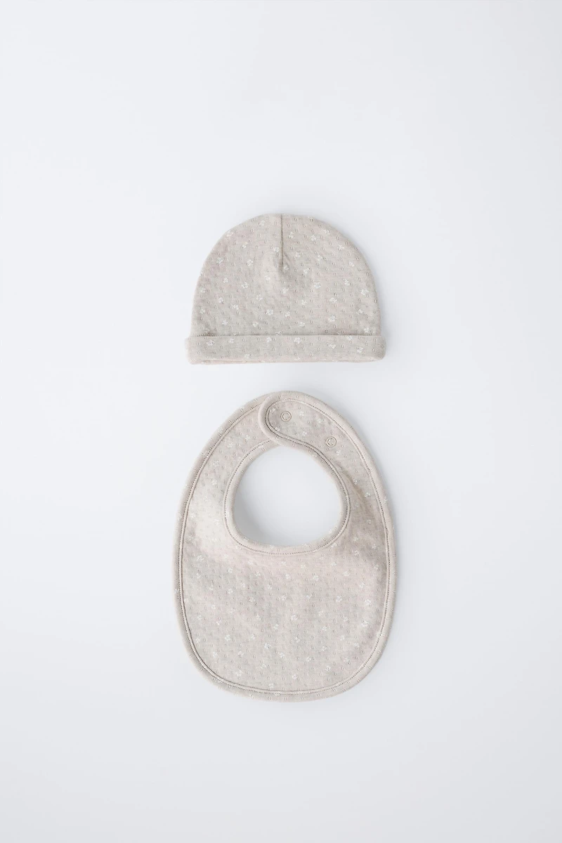 TWO-PIECE PRINTED TEXTURED HAT AND BIB SETTWO-PIECE PRINTED TEXTURED HAT AND BIB SETTWO-PIECE PRINTED TEXTURED HAT AND BIB SETTWO-PIECE PRINTED TEXTURED HAT AND BIB SET
