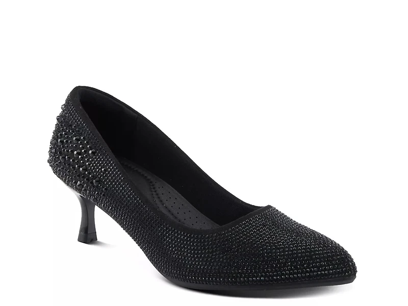 Your personality shines with the Tyanna pump from Patrizia. This rhinestone-accented pair sparkles with each step, while the classic silhouette proves versatile.