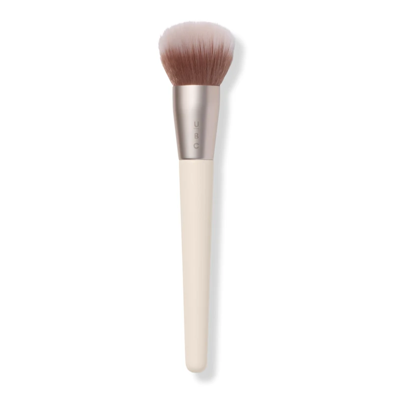 UBC DUAL FIBER FOUNDATION 110. Benefits: Dual fiber bristles with a slightly domed shape provide an airbrushed application. Ideal for sheer-to-medium coverage foundation. Premium synthetic hair for a high-performance application. Best used with liquid or cream foundation formulas. Features: Proudly cruelty free with clean ingredients. Handle is made with wood from responsibly managed forests certified by Forest Stewardship Council (FSC). Sleek handle design for a comfortable hold. :