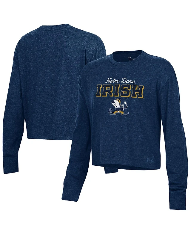 Under Armour Women's Heather Navy Notre Dame Fighting Irish Essentials Icon Ultra-Soft Cropped Long Sleeve Tri-Blend Performance T-Shirt