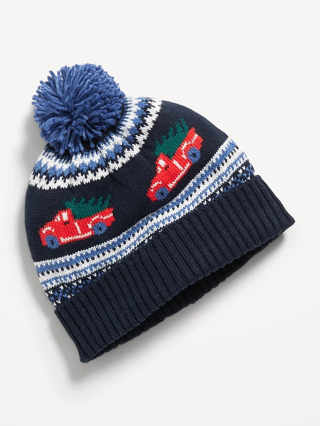 Unisex Pom-Pom Fair-Isle Beanie for Toddler