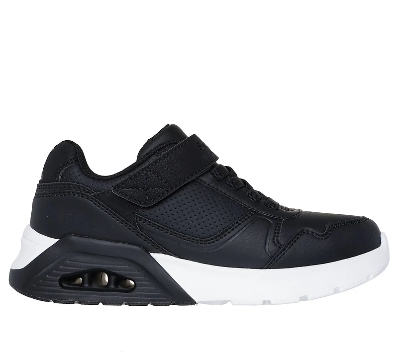 Kick it in style with the classic Skechers Street™ UNO Lite 2.0 - Pillar Duo. This lightweight fashion sneaker features a synthetic duraleather upper with quarter perforations, stretch laces, an adjustable instep strap, and a cushioned Skechers Air-Cooled Memory Foam® insole.