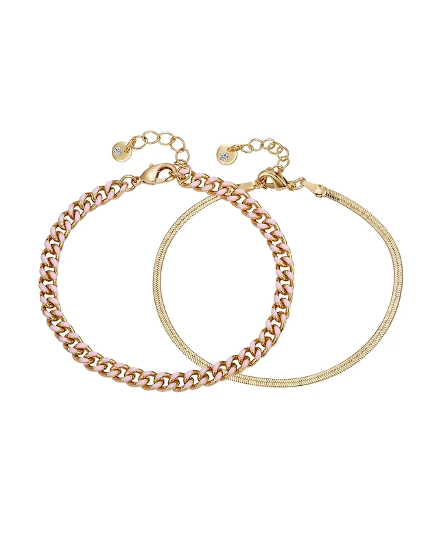 Unwritten 14K Gold Flash-Plated Light Pink Enamel Curb Chain and Herringbone Chain Bracelet Set in Bloomington, MN