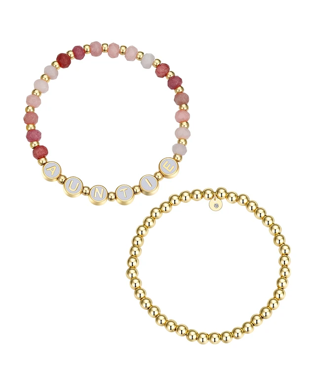 Unwritten Multi Color Bead and 14K Gold Plated Bracelet Set, 2 Pieces
