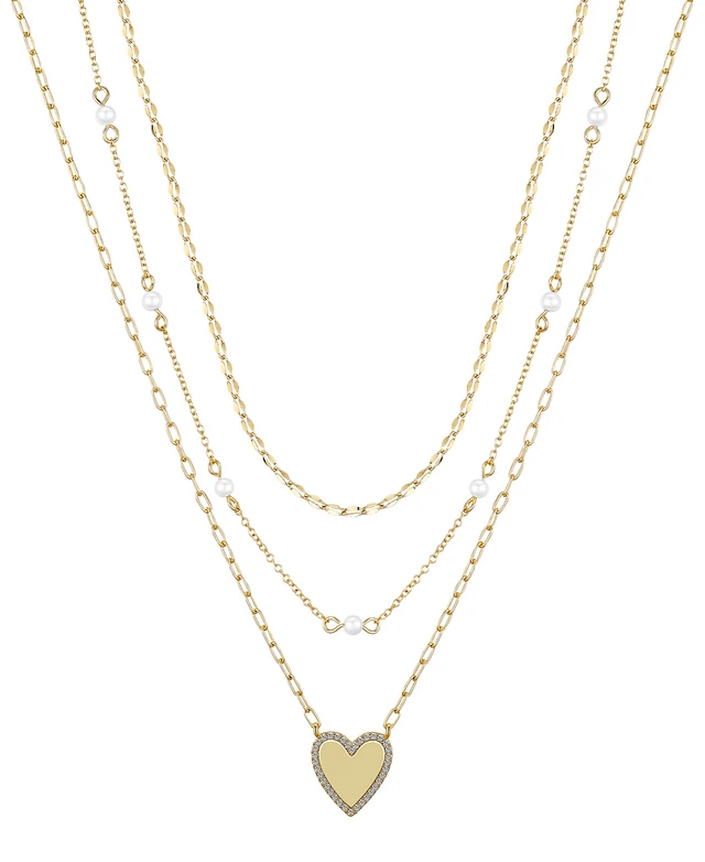 Unwritten Natural Pearl Cubic Zirconia Heart Layered Necklace Set