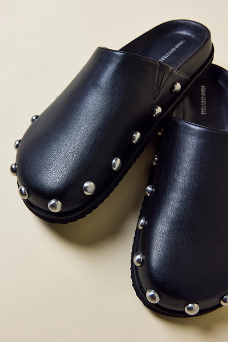 Sleek faux leather or suede clogs with polished metal stud trim. Featuring a comfy padded footbed and easy slip-on design for effortless styling. Only at UO.