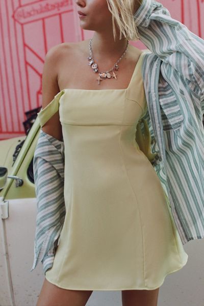 Oh-so-sweet UO mini dress that's a best-seller for a reason! Short cocktail dress designed in a sleek satin with a sheen finish featuring a square neckline, tank straps and seam detailing down the body for added movement. Topped with oversized bows at the back of the straps for a femme finish. Style with kitten heels and a clutch for a cute party outfit! Find it only at Urban Outfitters.