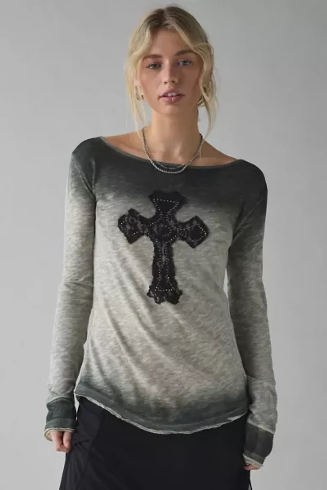 UO Brynn Cross Applique Graphic Long Sleeve Tee