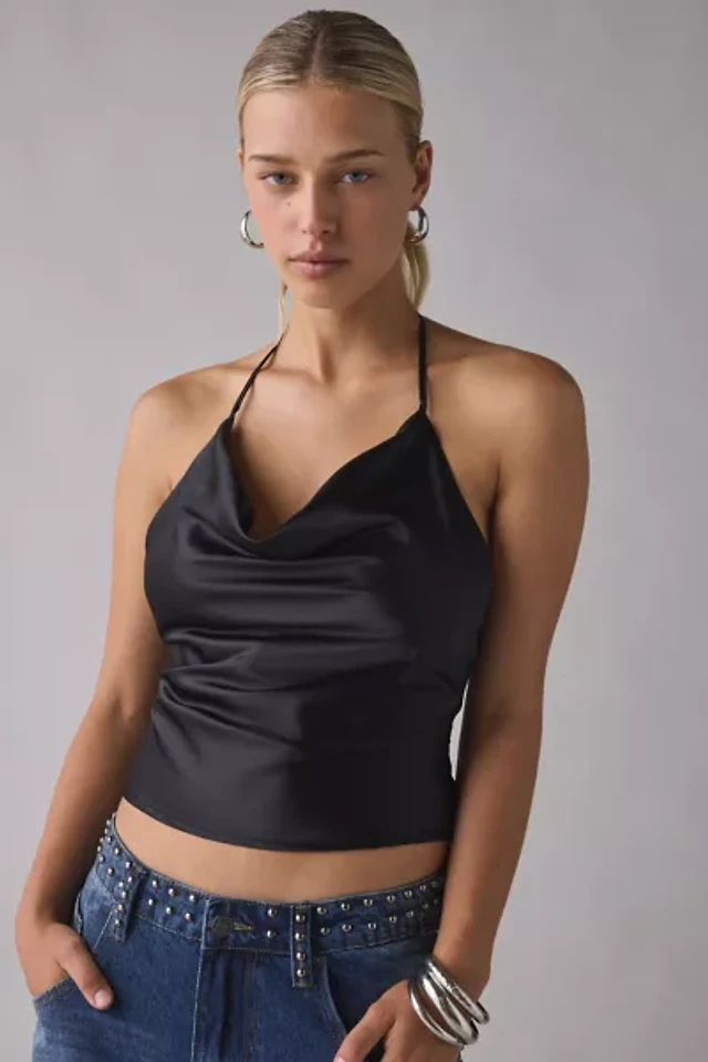 UO Deja Satin Cowl Neck Halter Cami