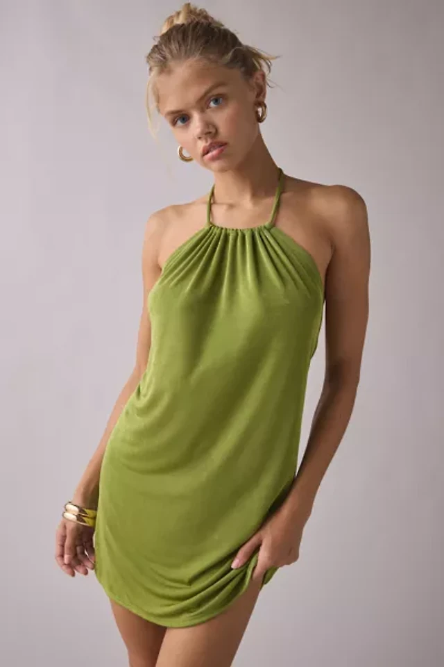 UO Lauren Mesh Plunge V-Neck Halter Mini Dress