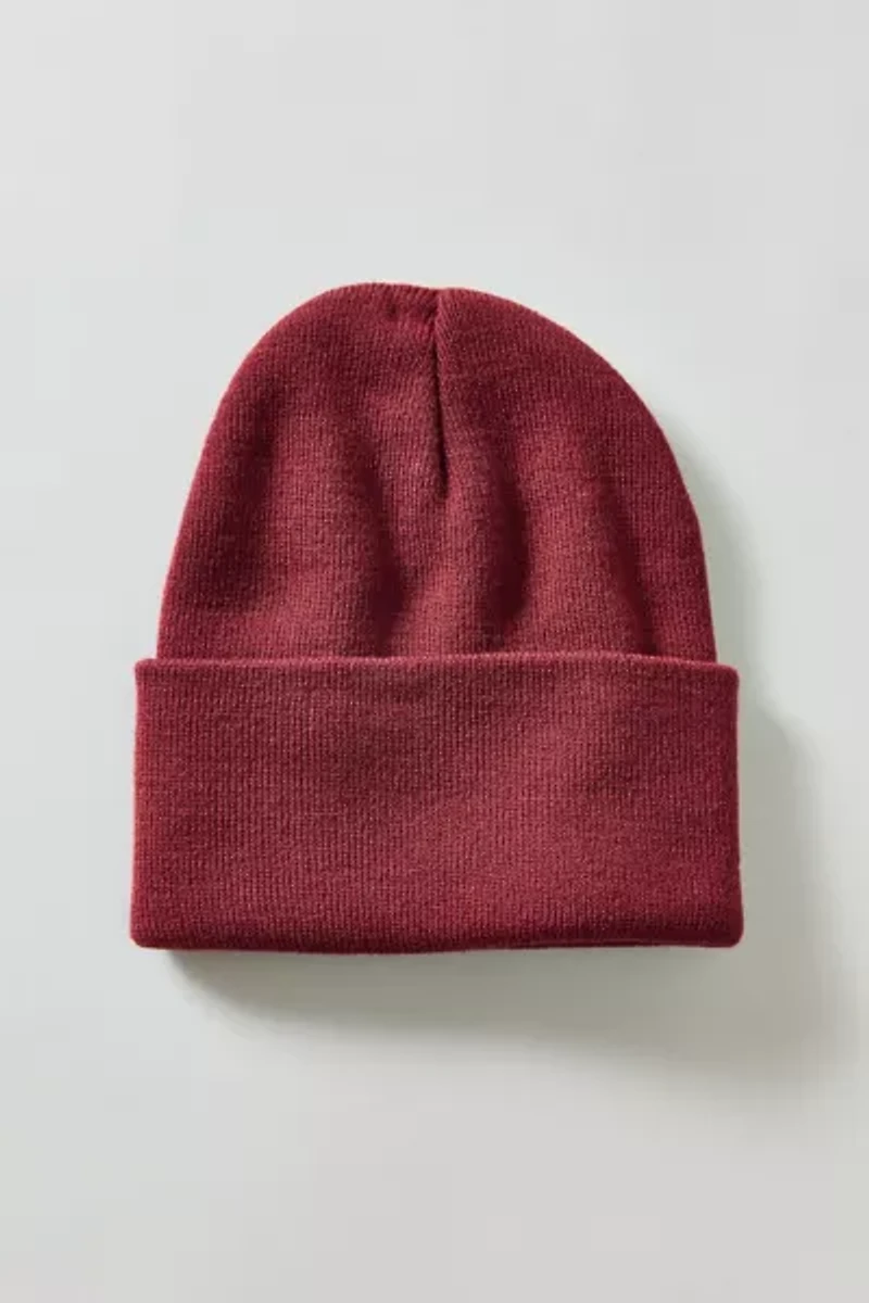 Essential ribbed beanie hat from Urban Outfitters in all our favorite colors. Soft & cozy knit beanie silhouette complete with a fold-over wide cuff. Made from a thick knit material, this staple beanie is perfect for chilly weather.