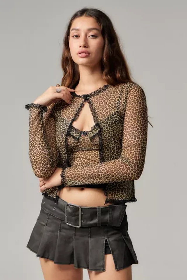 UO Leopard Print Mesh Cardigan