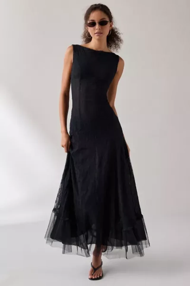 UO Like A Dream Reversible Sheer Lace Scoop Slip Maxi Dress