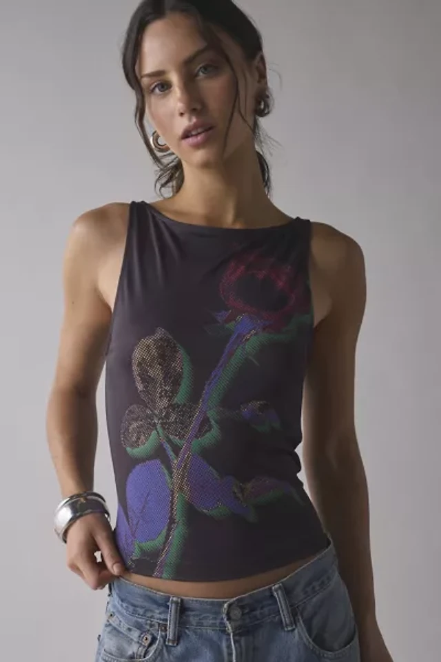 UO Mercedes X-Ray Rose Graphic Boatneck Tank Top