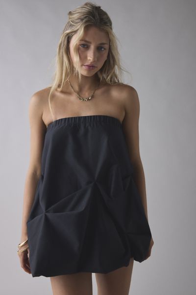 Bold UO bubble dress in a voluminous, mini silhouette. Strapless dress designed in a structured woven featuring an elasticated tube neckline, gathered details along the skirt and a bubble hem. Try it styled with heeled sandals for an event or night out. Find it only at Urban Outfitters.