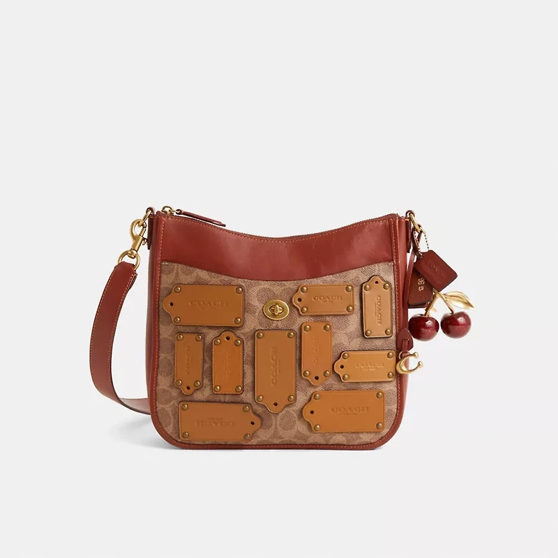 Pre-owned and now (re)loved, this Chaise Crossbody is a very special Coach upcrafted design inspired by our commitment to rethinking and reducing our impact on the planet. Saved from the landfill, this gently-worn bag was lovingly repaired and transformed by our in-house craftspeople who added clever details to give it a second life. It’s completely one-of-a-kind, and comes with its own unique set of charms. Wear it, love it, pass it on.Reimagined by Andrew Kaefer with a distinctive motif of our iconic Hangtags punctuated with gleaming golden rivets, this spacious design has been expertly cleaned, conditioned and restored. Our talented craftspeople Andrew Kaefer and Jose Reyna embellished the front with a medley of riveted Coach Hangtags, refreshed the interior, exterior and strap, restitched the tack stitching on side tab, replaced the D-ring and turnlock, then added a playful repurposed charm. A minimalist bag with maximum impact, the laidback Chaise is the perfect choice to go hands-free. Crafted of refined leather and our Signature canvas, it features a convenient front slip pocket finished with our turnlock closure and a secure exterior zip pocket.