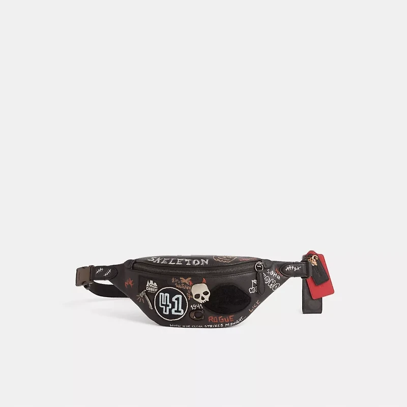 Pre-owned and now (re)loved, this Charter Belt Bag 7 is a very special Coach upcrafted design inspired by our commitment to rethinking and reducing our impact on the planet. Saved from the landfill, this gently-worn bag was lovingly repaired and transformed by our in-house craftspeople who added clever details to give it a second life. It’s completely one-of-a-kind, and comes with its own unique set of charms. Wear it, love it, pass it on.Reimagined with a charmingly spooky vibe by Rose Oliva featuring wicked cool patches and a frightfully fun Halloween graffiti doodle motif creatively hand-painted by Nicole Izquierdo, this hands-free style has been expertly cleaned, conditioned and restored. Our talented craftspeople Nicole Izquierdo and Yngrid Pichardo Baez hand-decorated the front with a collection of vibrant patches and pins, redid the edgestain on Signature charm, then added a playful repurposed charm. For adventures near and far, our Charter is designed to make every journey, commute and errand feel like a first-class experience. Finished with our Signature hardware, this soft polished pebble leather 7 has space for everyday essentials and adjusts in length to be worn crossbody or over the shoulder.