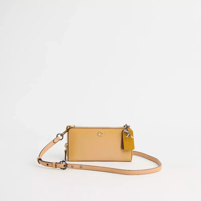 Pre-owned and now (re)loved, this Double-Up Creation is a very special Coach upcrafted design inspired by our commitment to rethinking and reducing our impact on the planet. Saved from the landfill, this gently-worn bag was lovingly repaired and transformed by our in-house craftspeople who added clever details to give it a second life. It’s completely one-of-a-kind, and comes with its own unique set of charms. Wear it, love it, pass it on.Reimagined into a two-tone sophisticated crossbody design by Rose Oliva with double the space and double the organization, this hybrid style has been expertly cleaned, conditioned and restored. Our talented craftspeople Alfred Deaza and Yngrid Pichardo Baez sewed two accordion zip wallets back-to-back, attached D-rings and a long crossbody strap, then a playful repurposed charm. Crafted of refined leather detailed with our Signature hardware, each expandable design unzips to reveal a spacious interior. Each one holds an iPhone X and features 12 card slots, two full-length bill compartments and a coin pocket to keep essentials organized.