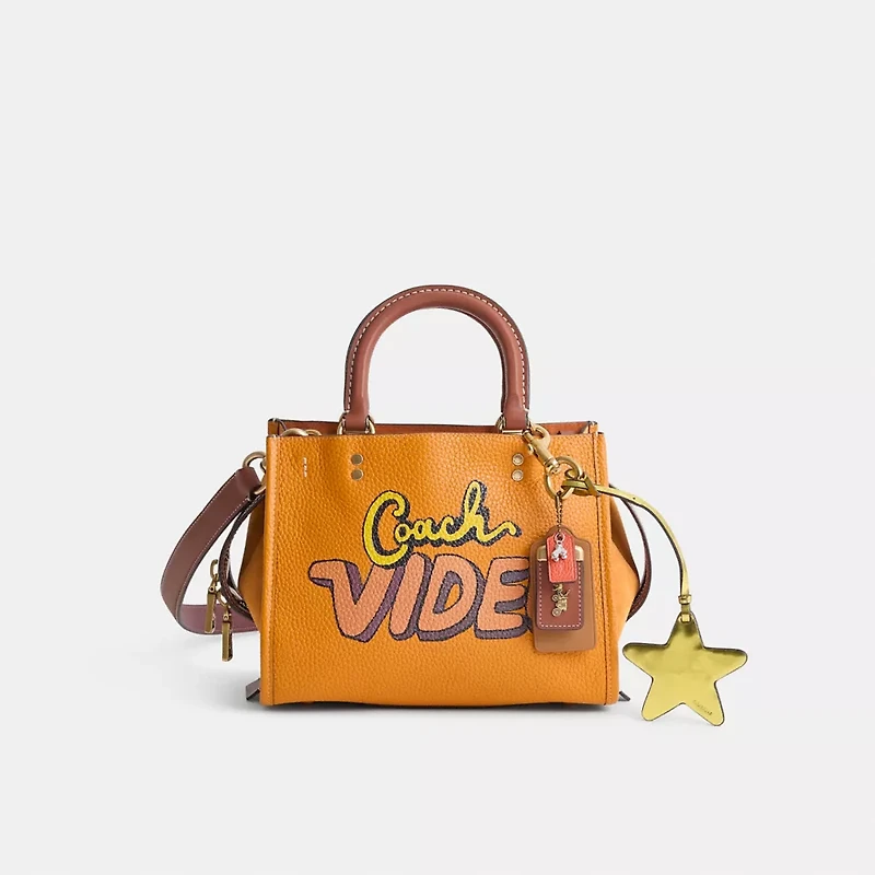 Pre-owned and now (re)loved, this Rogue Bag 25 is a very special Coach upcrafted design inspired by our commitment to rethinking and reducing our impact on the planet. Saved from the landfill, this gently-worn bag was lovingly repaired and transformed by our in-house craftspeople who added clever details to give it a second life. It’s completely one-of-a-kind, and comes with its own unique set of charms. Wear it, love it, pass it on.This special-edition Rogue Bag 25 celebrates 10 years of Rogue. Reimagined in our (Re)Loved workshop and inspired by a Spring 2022 sweater, it’s been cleaned, repaired, and restored. Finished with a hand-painted graphic, it’s crafted with care. Inspired by free spirits, rebels and dreamers, the aptly named Rogue is a go-anywhere bag in a colorblock mix of natural pebble leather, glovetanned leather and suede. The 25 has two open compartments and a secure center zip compartment. It comes with a detachable, convertible strap for shoulder or crossbody wear.