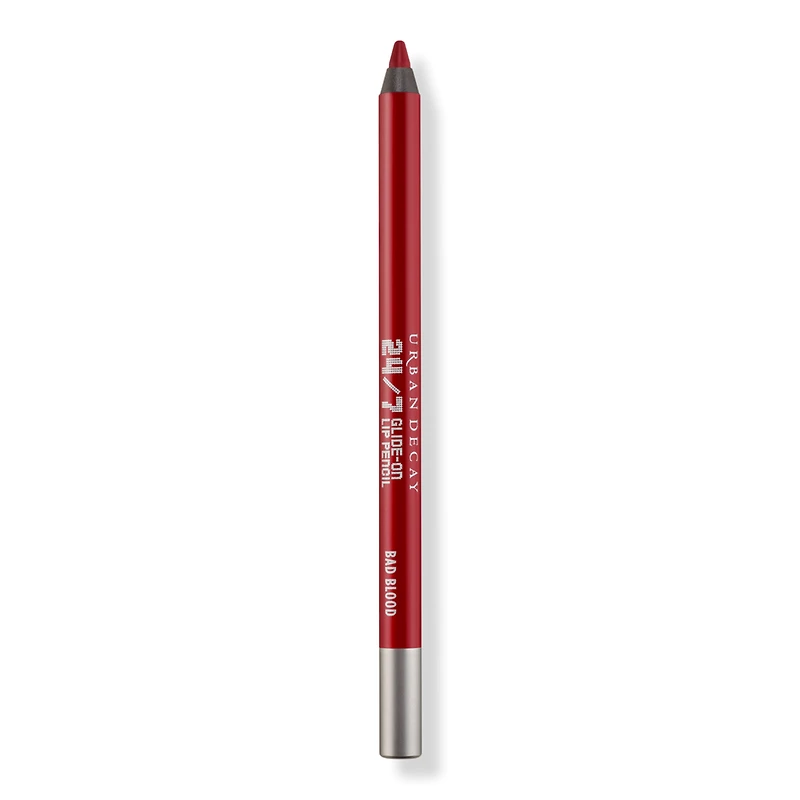 24/7 GLIDE-ON LIP PENCIL 1993. Benefits: Waterproof: Go ahead and take a drink -- you can't sip this stuff off. Smudge-proof: It's gonna stay #cuzitsUrbanDecay. Long lasting: When you use 24/7 Lip Pencil to fill in your lips completely, it primes your pout for lipstick or lipgloss, grabbing on to color to help it last. These lip pencils even prevent lip color from feathering out of bounds!. Hydrating: With this moisturizing and nourishing formula, there's no more dry, cakey lips. Glides on easy: no more stabbing your lips with a hard lip liner pencil with hardly any color payoff -- 24/7 Lip Liner glides on smoothly to prime AND define. Features: Wide shade range: The whopping range of shades (that coordinate with Urban Decay Vice Lipstick) will make sure you always have the right color to match your mood. There's even a clear lip liner (shade Ozone).. Shade-matched barrels make it easy to find the exact color you need (no matter how crammed your bag is).. Paraben-free. Key Ingredients: Vitamin E: Hydrates, moisturizes, and conditions the skin. Jojoba Oil and Cottonseed Oil: Conditions and softens the skin.