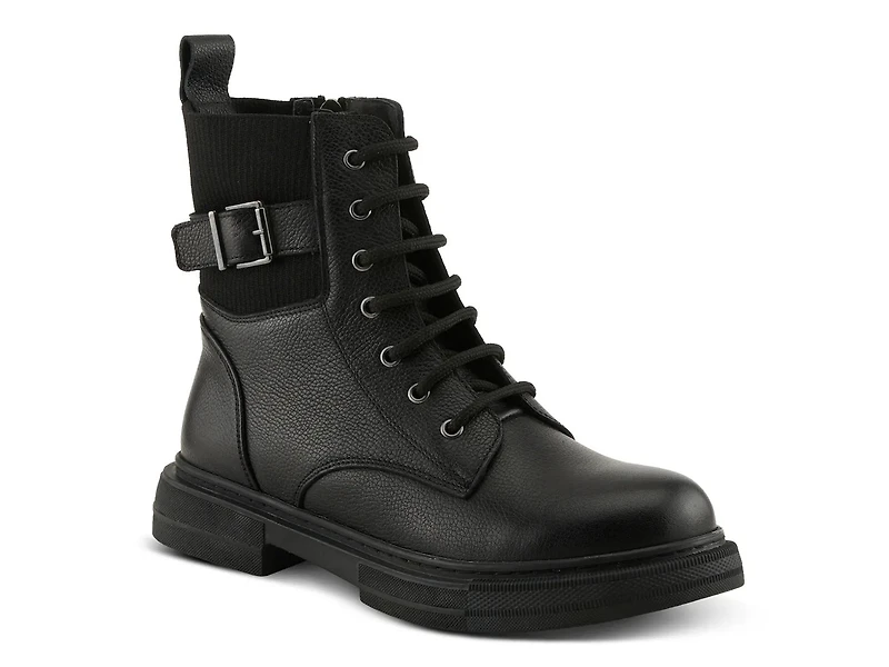 Rugged yet refined, the Urbanattire combat boot from Spring Step adds modern edge to all your cool weather looks. This ankle boot features a ribbed fabric panel with a buckle accent and a rubber sole for added durability.