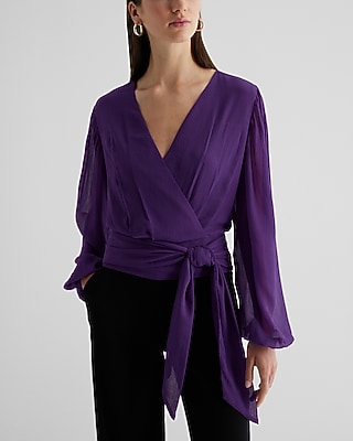 Trendy and cute, this sheer sleeve faux wrap front top comes with a tie waist for a chic fit. Style with your favorite denim and heels for a night on the town.