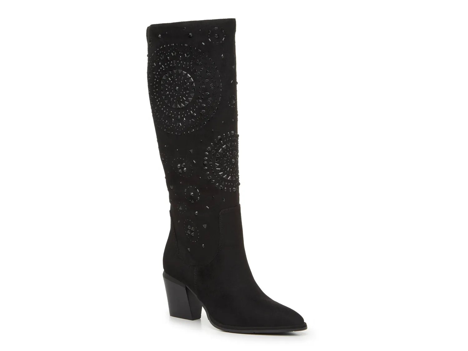 Bring out the bling in the Vakara boots from Impo. The simple high-shaft style is crafted with sparkling rhinestones in geometric designs. Complete with a sleek almond toe and a stacked block heel for a classic look.