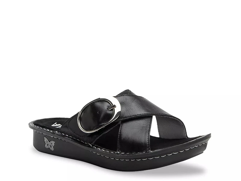Take your practical style a notch up with the Alegria Vanya wedge sandal. The handstitched cross-strap sandal displays a bold buckle detail and has a memory foam-blend contoured footbed for excellent cushioning. The APMA certification makes it highly reliable.