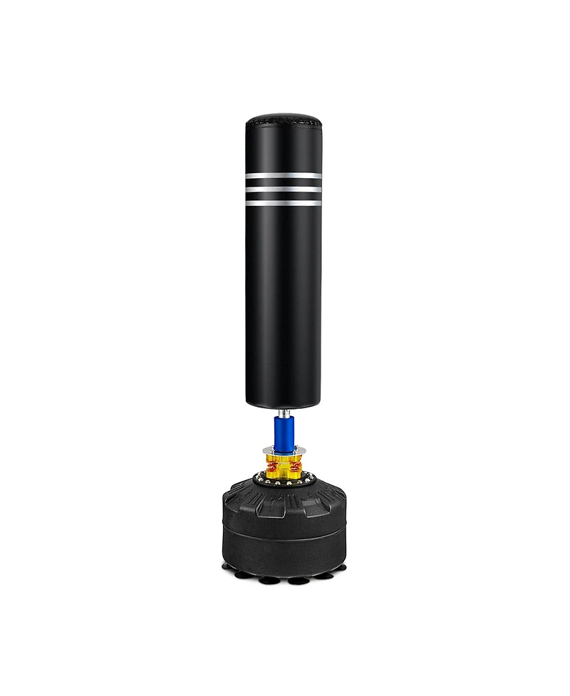 This 70"" freestanding punching bag comes with a pair of 12OZ professional boxing gloves, offering a larger punching area ideal for boxing, kickboxing, karate, and taekwondo. The Abs base with 12 suction cups ensures stability and can be filled with sand or water for added weight. Its 360° shock and noise absorption system with high elastic springs and dual shock absorber provides excellent rebound and noise reduction. Made with high-quality Pu leather and resilient Epe foam, this punching bag is durable and tear-resistant. Easy to assemble, it will be delivered in 2 boxes.